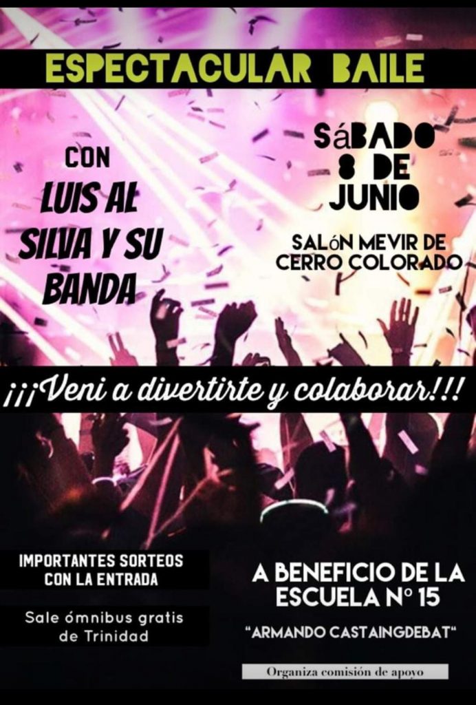 Este sábado 8 de junio en el Salón MEVIR de Cerro Colorado se llevará a cabo un gran baile a beneficio de la Escuela N°15 «Armando Castaingdebat».