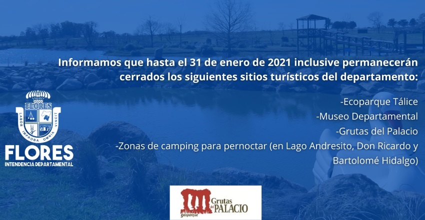 La Intendencia Departamental de Flores volvió a extender el cierre de sitios turísticos, en esta oportunidad hasta el 31 de enero de 2021 inclusive.